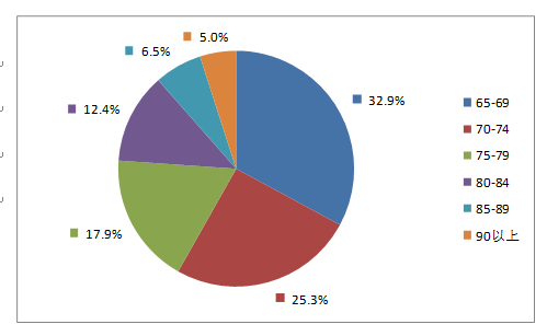 2019年老年患者藥品不良反應(yīng)/事件報(bào)告中,男女患者比為0.95:1。老年患者年齡分布中65-69歲老年患者報(bào)告占32.9%,70-74歲老年患者報(bào)告占25.3%(圖15)。